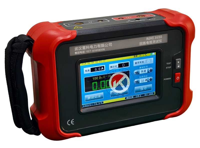 REKE-3690 手持式回路電阻測試儀根據(jù)人體工程學(xué)原理設(shè)計(jì),手感舒適,特殊設(shè)計(jì)的機(jī)體結(jié)構(gòu)具有絕緣、封閉,防漏電、防風(fēng)沙,減震防護(hù)等功能。儀表采用高亮度5寸觸摸彩屏,操作簡易快速功能直達(dá),字符清晰明亮,中英文顯示界面。儀表有多檔測試電流可選,儀表顯示當(dāng)前檔位的測試范圍,用戶可自行選擇電流檔位及測試時(shí)間,滿足用戶不同場合的要求。
